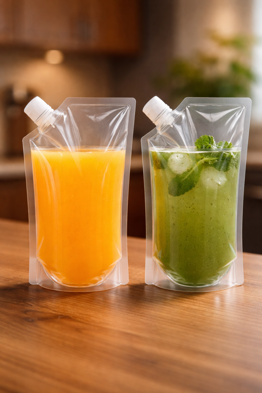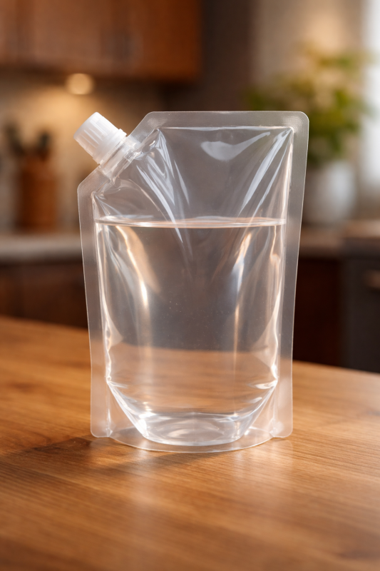 Fully transparent design for clear product visibility and enhanced consumer trust, integrated spout for easy pouring and reusability, lightweight and durable structure, leak-proof sealing, excellent shelf appeal, and ideal for both food and non-food liquid application